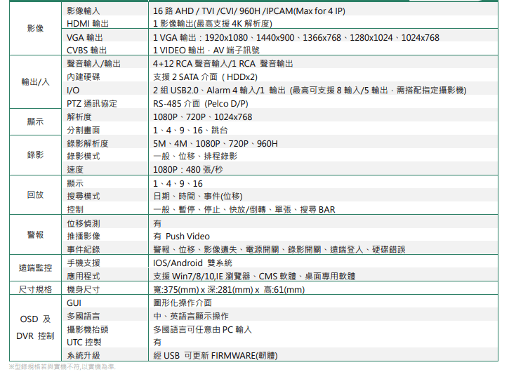 - 監視器的鏡頭解析畫素,目前市面上分為三種解析畫素規格,2,000,000畫素4,000,000畫素5,000,000畫素,畫素越高硬碟資料儲存的空間需求就越大。