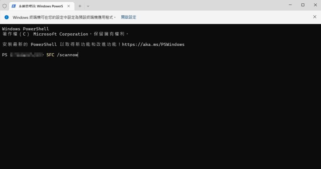 按下鍵盤的Windows + X,點擊選單中的「終端機(系統管理員)」,在視窗中輸入「SFC /scannow」,讓電腦掃描系統是否有錯誤並修復,如果修復後仍無法解決硬碟的問題,建議立即停止使用該硬碟。